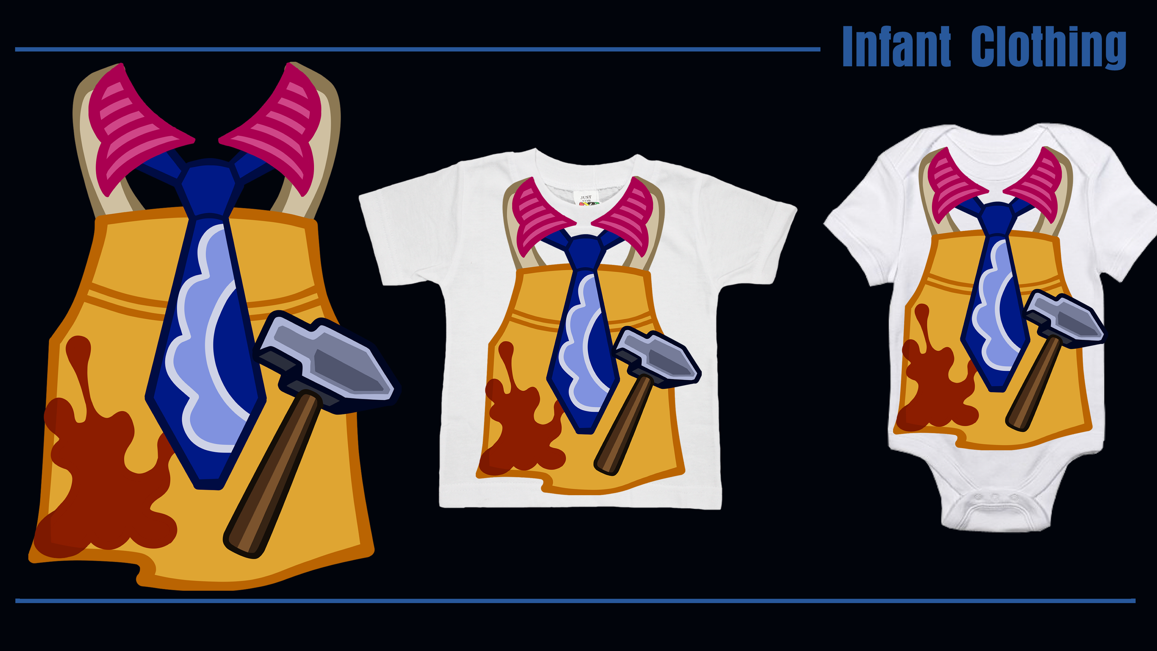 A stylized vector of Leatherface's Apron designed for an infant onesie and child's tee.