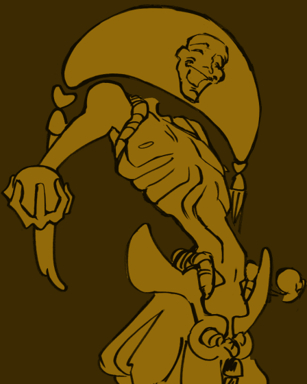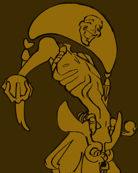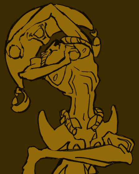 Her true form is that of an animalistic, bloodthirsty clam who takes on a humanoid form to better move on land.