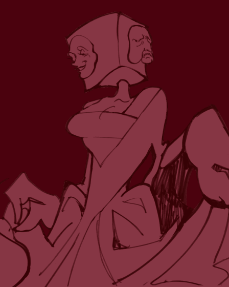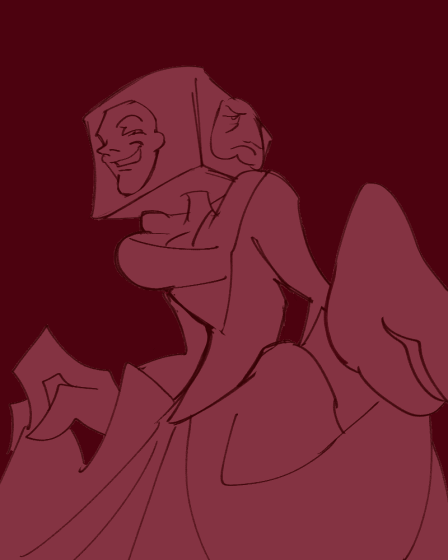 The Liars is a noblewoman who brawls in the name of her family's court. The pink faced head is the dominating personality of